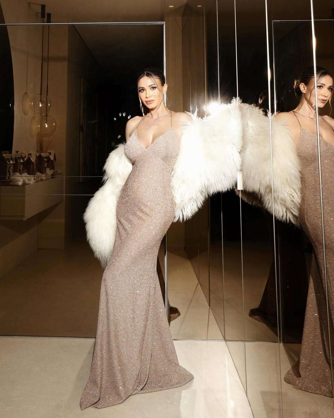 意大利電視主持人迪萊塔-萊奧塔在圣誕前夕發(fā)布最新寫真,身穿金色深V禮服展示孕肚。她與卡里烏斯本月確認即將迎來第二個孩子,并將這一消息形容為“最好的圣誕禮物”。
